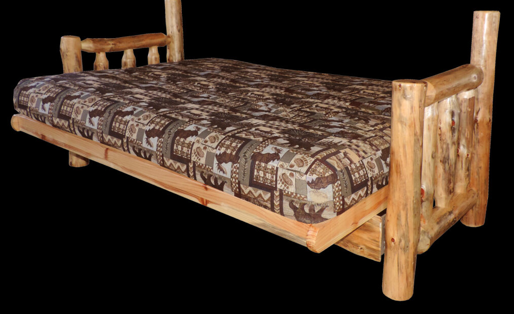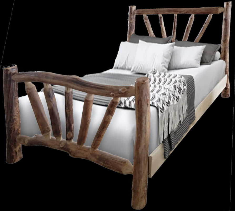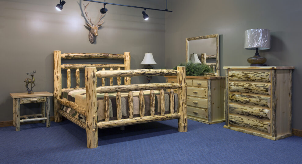 We build a full line of log furniture, including bedroom, living room, dining room, man cave, and occasional pieces, and we gladly welcome custom orders. Our work features red pine, lodgepole pine, aspen, and cedar logs, and we’ve found that log-furniture buyers often enjoy adding their own personal twist to their pieces — a detail we’re always happy to accommodate.